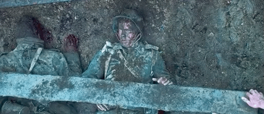 在目睹战友被碾压烧死后,保罗在空军的打击下意外掉进了一个弹坑。