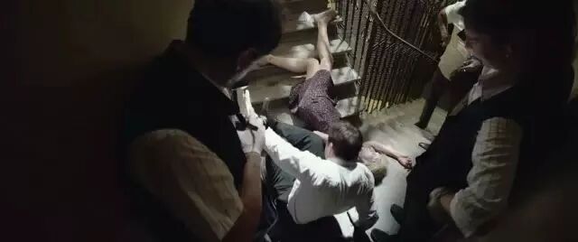 而就在这个时候,嫌疑人推倒贝拉德迅速从楼梯处逃跑。