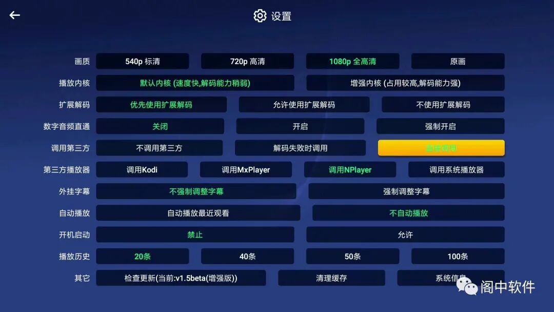 在设置里,默认调用第三方播放器,打开视频会自动跳转过去播放,亲测可用。