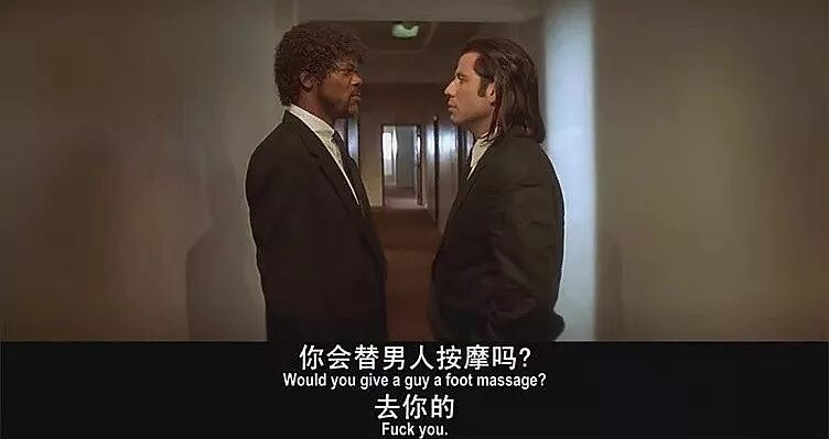 ©️《低俗小说》那部电影《让子弹飞》也是一部插科打诨的话痨片。上句与下句无缝衔接,对白紧密相连。几乎不可能听到人物喘气,就像群口相声一样。最著名的一幕是“鸿门宴”那场戏。人物众多,每句话简短有力,谁说话就给谁特写或者近景,特点就一个字:快!圆环轨道,三台机器绕着拍,三角关系对剪、正反打、过肩,话没说完就切给对方,要么就切反应镜头,且最多停留一秒,动静极小。这是话痨片的常见拍法。《落水狗》开场也是如此,但弧线运动比之更大;伍迪老头的《汉娜姐妹》,“转圈吃饭”那场戏也用了类似手法。![]()