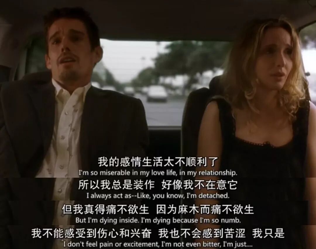 ©️《克莱尔的膝盖》理查德·林克莱特的《爱在》系列继承了以上两种风格,包括伍迪艾伦神经质的无聊漫谈和侯麦的清新浪漫。男、女主徜徉在维也纳和巴黎的街头,从对爱情的体验,从我们都只是宇宙中的一颗星尘到女权主义,从死亡到艺术再到哲学,谈论着爱情的本质。