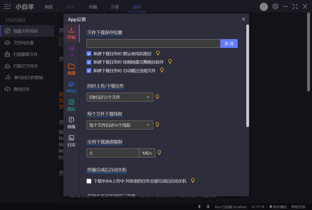 小白羊可以通过远程Aria2功能把文件直接下载到远程的VPS/NAS上