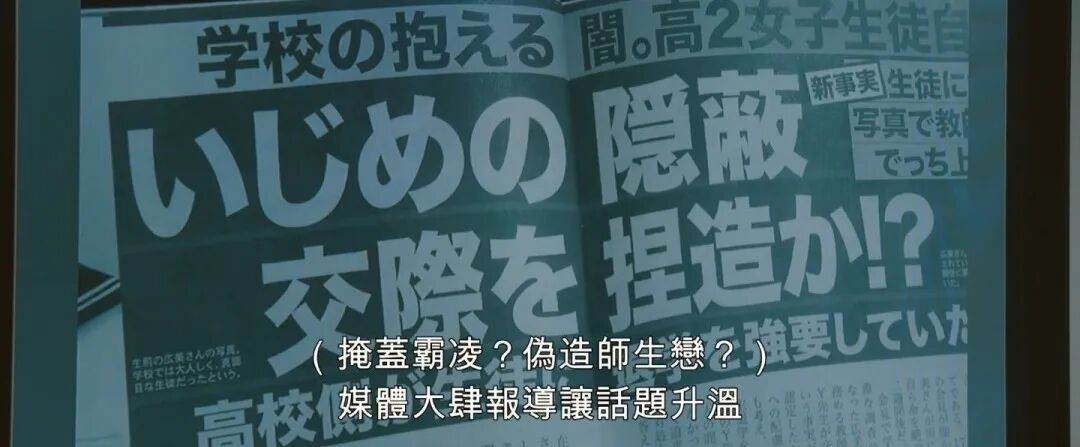 该片导演细腻地铺陈表面的真实,再一层层揭露背后的谎言,戳破之前所建立的事实。事实与谎言参差对照,是非真假难辨,各种主观立场的发言相互矛盾,反映了日本社会的真实现况。