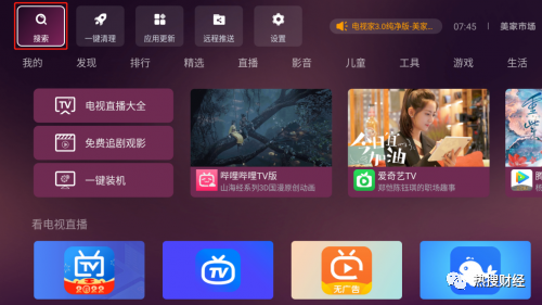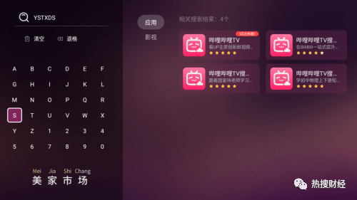 第一步,需要在电视安装一个第三方电视应用市场-美家市场;