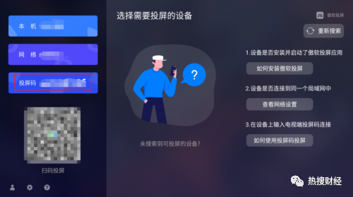 具体的连接方式一共有两种方法,都需要先在手机上下载一个傲软投屏。一种是在手机上打开傲软投屏后扫描电视中的二维码,即可进行投屏;还有一种方式是在手机端输入图中的投屏码,就成功实现投屏了。