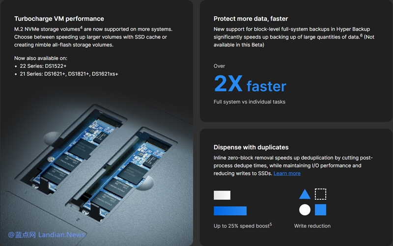 不过相较于消费者端的改进,DSM 7.2 其中重点是面向企业的性能和效率,这些改进是通过套件获得的,例如 Hyper Backup 对块级全系统备份的支持可以显著加快大量数据的备份速度,不过这些还在测试,Beta 版中也无法使用。