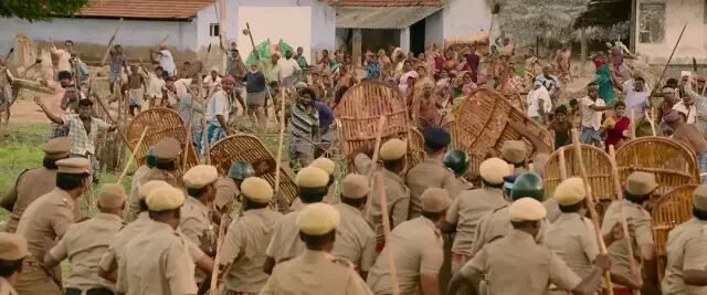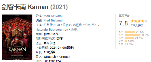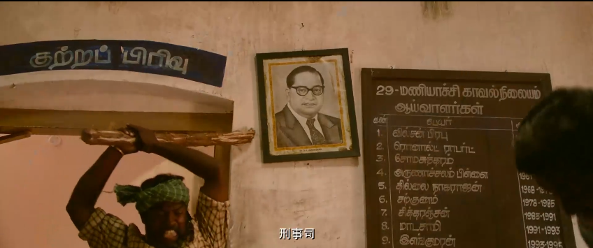 在警局外等候一日一夜的卡南等人见形势不对,冲入警察局救出了他的爷爷和其他几位长者,并将警察局砸了稀巴烂。再次受辱后的卡那必警长调用了更多的警力计划捣毁村庄,村民们则在长者们受伤回归后意识到警察并不是因为巴士损坏而暴打他们,而是因为他们作为低种姓农民却在警察问询他们时抬头挺胸地站着,全村人也在卡南的带领下决定奋起反击……《剑客卡南》的原型是1995年发生在印度南部泰米尔那都邦南部一个名叫孔迪亚村庄的种族暴动事件。在真实的历史事件中,大约600名警察围攻了一个大部分由“贱民”组成的村庄。从早上10:45起,警察们挨家挨户抢夺村民的贵重物品,搜走村中有意出国务工青年们的护照并付之一炬,并将所有的摩托车、自行车、农业工具等砸烂,还给村中唯一的一口井下了毒。而这场几乎接近歼灭战的围攻的起因,仅仅是一个“贱民”种姓的巴士司机和几个属于“首陀罗”种姓的学生打了一架。巴士司机被学生围殴后,同村的村民向学生所属种姓聚集的村庄发起报复性冲击,而在冲击过程中,村民们砸毁了一樽代表首陀罗种姓领袖的雕像。随后首陀罗种姓的村民开始在该地区的所有巴士和公共交通内张贴对“贱民”带有侮辱性的海报,并号召所有的首陀罗向他们宣战。就这样,这场最终导致了这场18人丧命,数百人倾家荡产的悲剧发生了。本片跟今年印度另一部影响很广的电影《杰伊比姆》一样,都是讲公权力对不可接触者/贫民权利的践踏,情绪饱满,刺痛人心。“比姆”指的是印度宪法之父、首位不可接触者出身的法律博士比姆拉奥·拉姆吉·安贝德卡尔。本片中,他的肖像被挂在警局墙上,警察在他的“注视”下殴打贫民老人,愤怒的村民砸烂警局,带走老人们。所有人眼里他们是暴民,可是如果能过安居乐业的日子谁想挨打受气呢?“暴警”还是“暴民”?百姓的诉求一直无法得到解决,正义无法伸张,因为他们都认为他们是愚民,糊弄敷衍过去就可以了。所以卡南之所以「伟大」,并不是他改变了村民的「现状」,而是他改变了村民的「思维」。观念才可以决定命运。导演: Mari Selvaraj