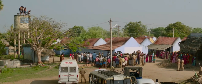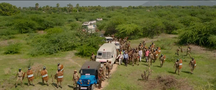 婆地亚村和其隔壁的梅卢尔村颇有宿怨,前者的村民来自更低种姓并因此常年收到压迫,在梅卢尔村民的政治影响下,婆地亚村多次上书要求在该村设立巴士站的情愿被拒,村民们想要外出就不得去去梅卢尔村的巴士站等候,而且在等候巴士的过程中长期遭到梅卢尔村民的欺辱和骚扰。在数次巴士拒载事件发生后,以卡南为首的村民砸烂了一辆在他们眼前拒载一位孕妇的巴士。此举在村民议事会上引发诸多争议,但最后村长决定全村人将共同保护为了村民利益出头的卡南等人,出面与警方交涉。巴士被砸后,巴士运输公司的老板和一众警察来到婆地亚村存兴师问罪,迫于其他村民压力,村长被迫供出卡南等人的藏身之处。但考虑到商业利益,巴士老板决定撤诉并不再追究责任。但一位名叫卡那必的警长却在执行此任务时被村民们不卑不亢的态度所激怒——他们见到他时不仅没有马上跪下来求饶,反而站得过于笔直。”日后警方传唤闹事村民去警局问话,为了保护卡南,村中几位年长的老者自告奋勇前去警局报告和签字。但卡那必却用棍子暴打所有老者,重伤大家后把他们仍在警察局的天台上暴晒等死。