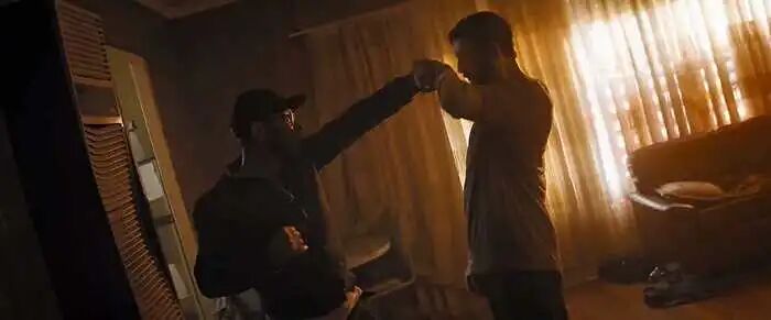 在全片的打戏中,导演让镜头跟随主角的动作进行运动,加上本就设计出机器风格的打斗动作,为观众带来了一种机器人般的视觉感受,配上电子音,几场打斗戏是又帅又爽,百看不厌。