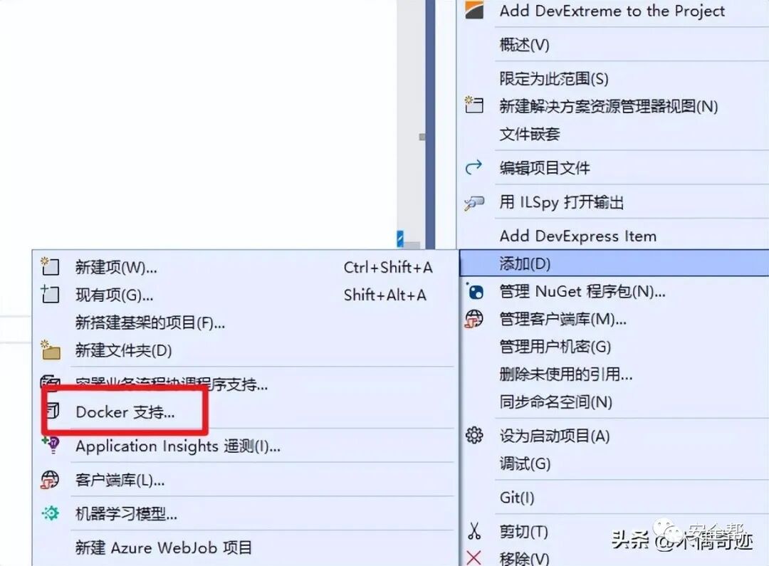 右击项目文件,选择 添加Docker支持 ,目标OS为linux