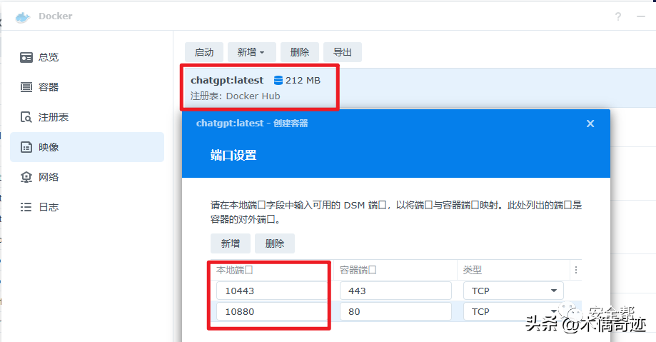关闭终端,进入群晖后台Docker管理界面,找到刚刚发布的chatgpt映像,点击启动,在端口设置那里把本地端口填上,避免重启的时候端口改变。