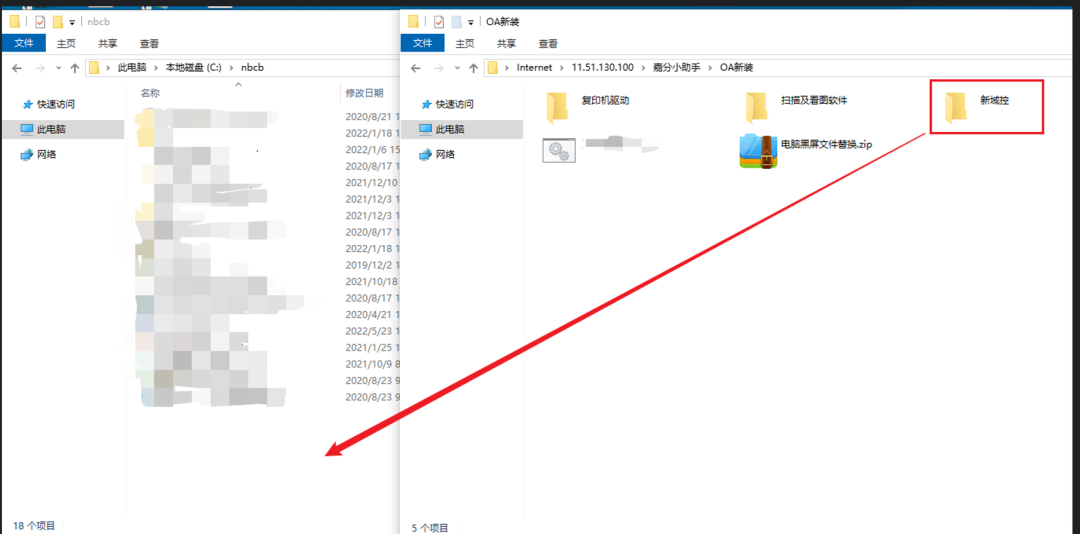 进入“OA新装”文件夹,将“新域控”文件夹复制到“本地磁盘(C:)”下的“nbcb”文件夹下。