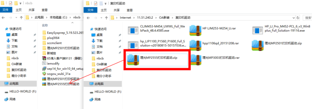 进入“OA新装”->“复印机驱动”,将对应楼层的打印机驱动复制到C:\nbcb文件夹下,具体楼层的打印机型号见下表