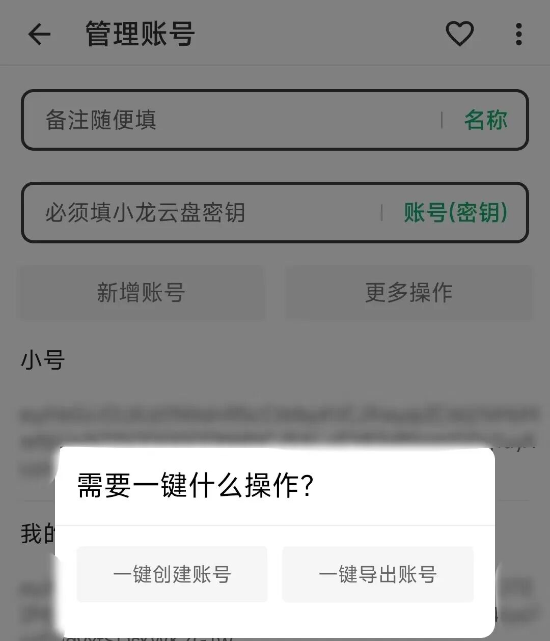 不废话,直接说这个小程序规则,建议先点击管理账号,填入或者自动生成一个密钥,不清楚什么是密钥的可以看小龙云那篇文章,简单理解就是一个账号ID