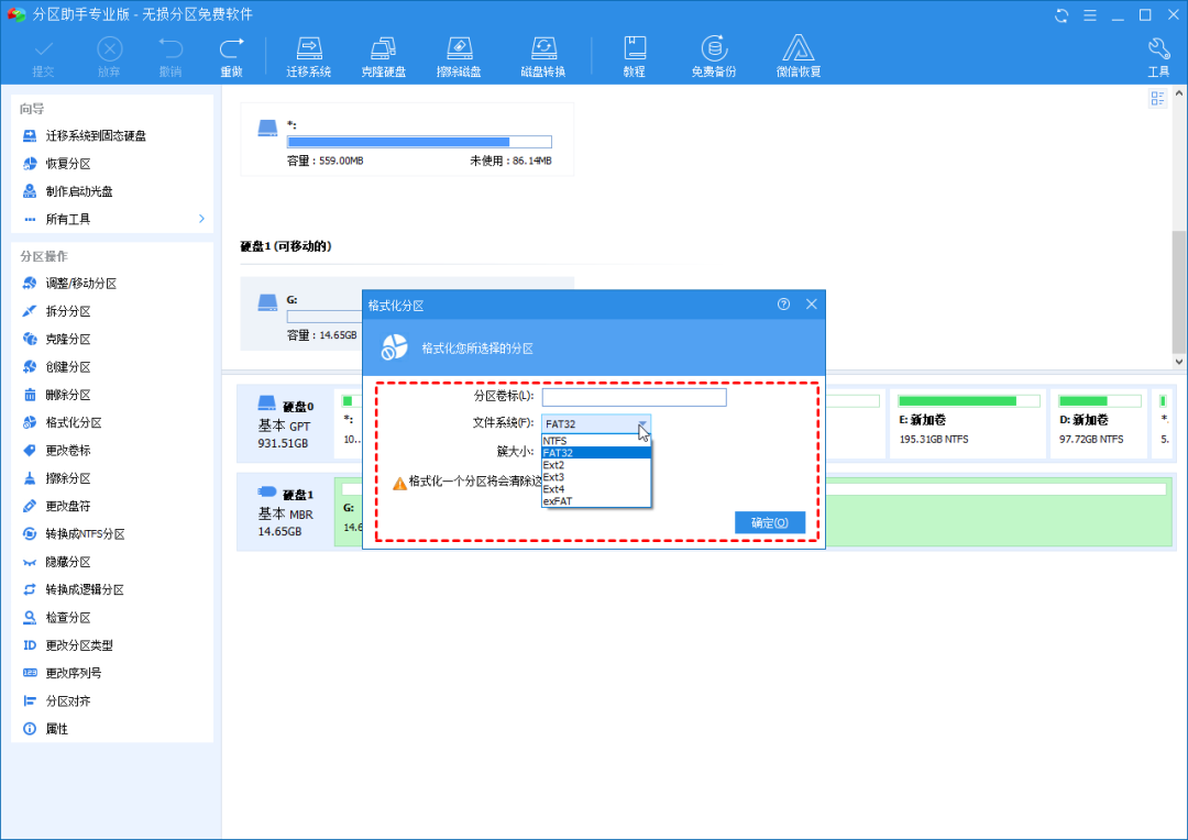 因此,当您无法在Windows中将U盘格式化为FAT32或NTFS时,该免费软件可以帮助您修复这个问题。在格式化之前,请提前备份必要的文件,因为数据都将被删除。