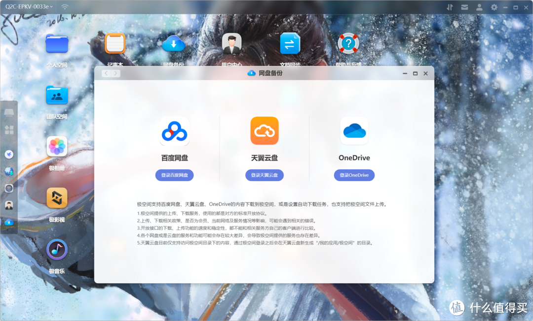 极空间支持将资料远程备份到另一个极空间设备,同时也支持全面备份到百度网盘以及Onedrive云盘。