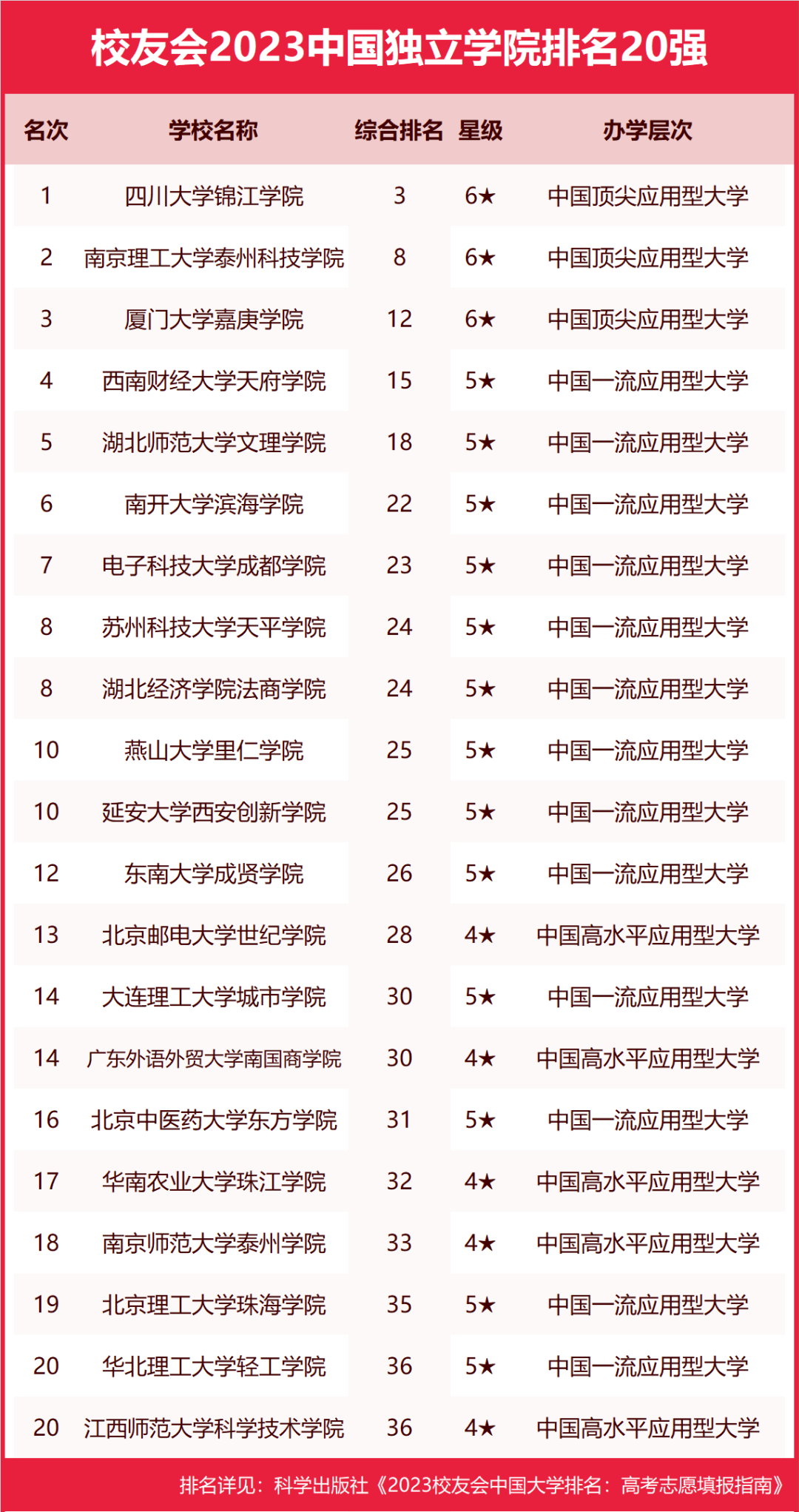 近期,全国第三方大学评价机构艾瑞深校友会网正式发布《2023校友会中国大学排名:高考志愿填报指南》,连续第21年发布中国大学排名、中国民办大学排名和中国高职院校排名等榜单。